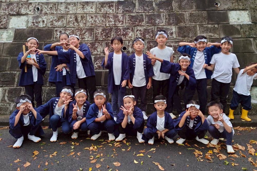 3歳から小学6年生までの子どもたちが、元気いっぱいに太鼓の練習に励んでいます。