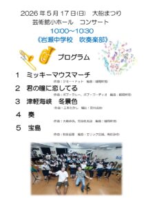 | 1 | 鎌倉市立岩瀬中学吹奏楽部 | 10:30~11:00 | 30分 |