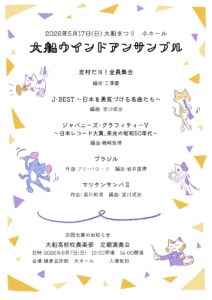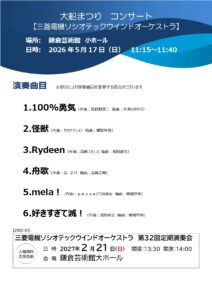 | 3 | 大船ウインドアンサンブル(大船高校卒業生バンド) | 11:55~12:20 | 25分 |